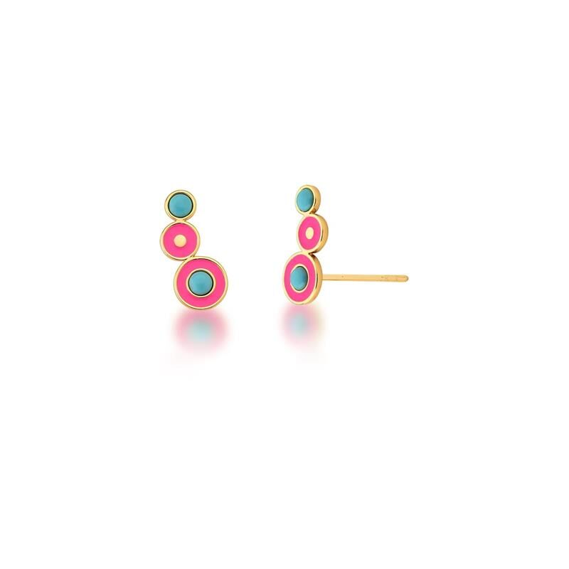 • BRINCO QUADRADO ESMALTADO ROSA E RESINA TURQUESA BANHADO A OURO