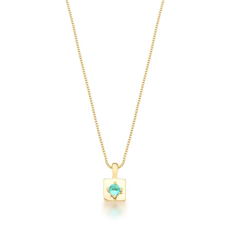 • COLAR COM PINGENTE QUADRADO COM CRISTAL BANHADO A OURO